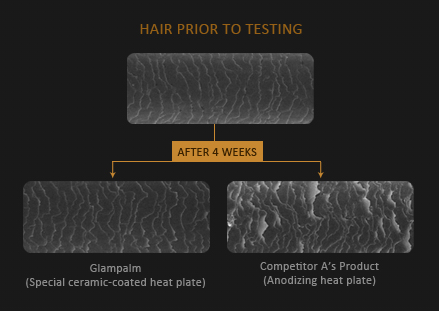 Hair styled with Glampalm showed some minor split-ends, but was otherwise
